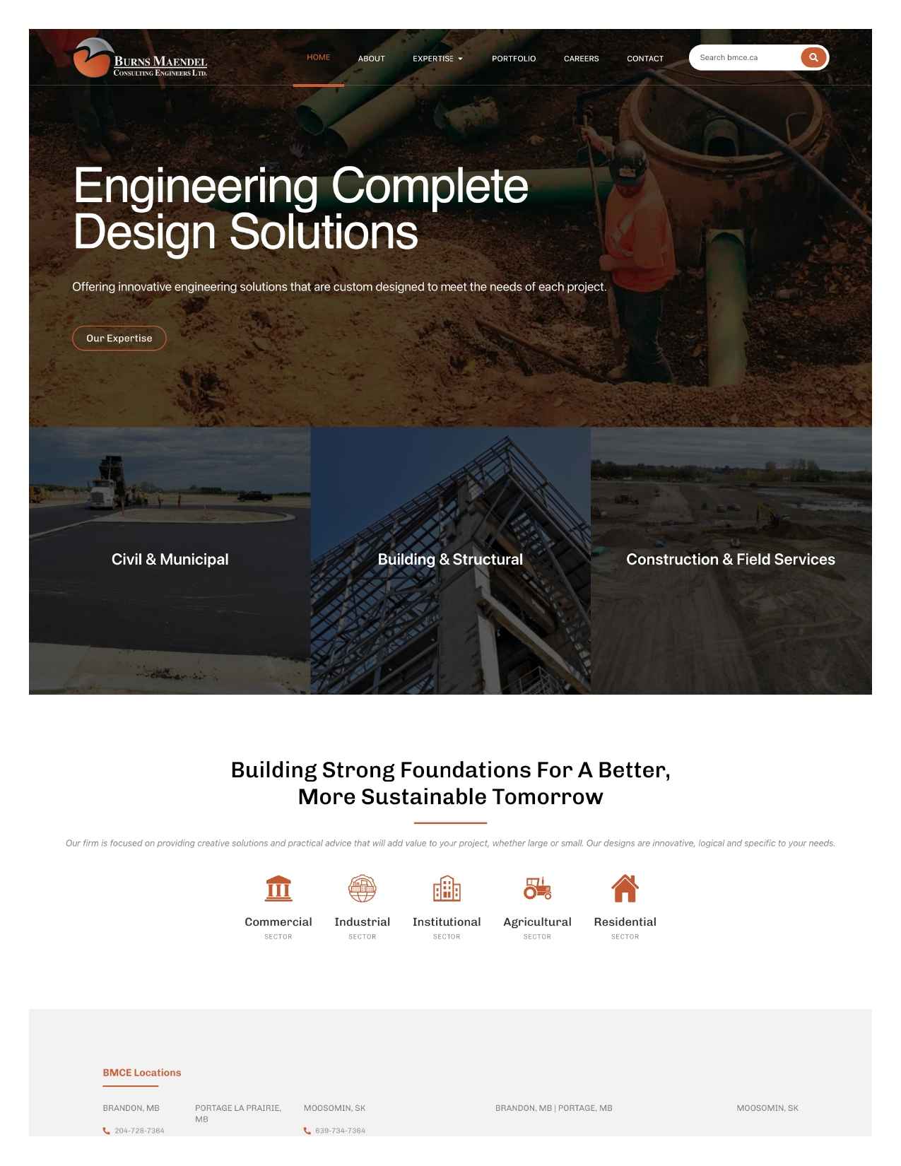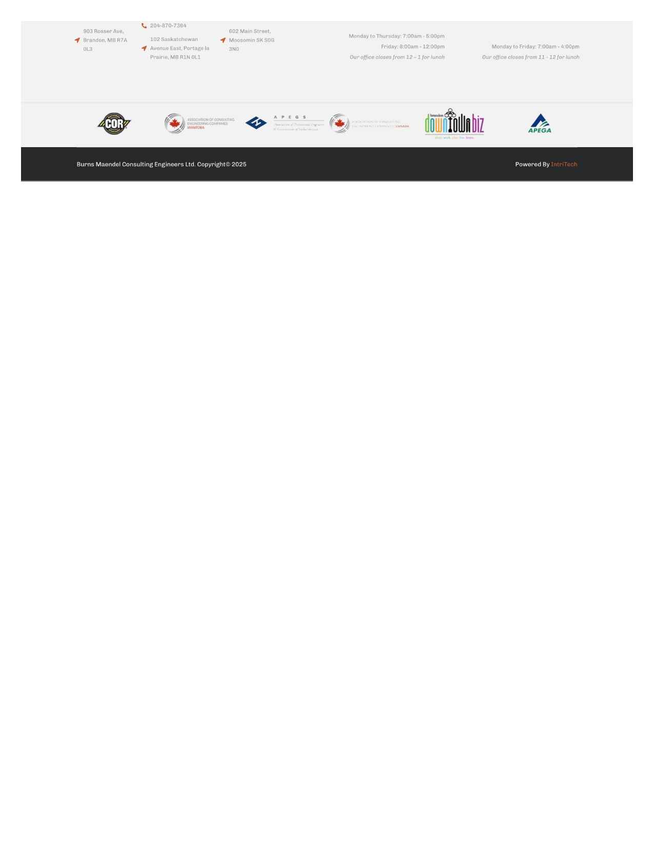 Burns Maendel Consulting Engineers Ltd is a multidisciplinary engineering firm offering civil building structural and construction services across commercial industrial agricultural institutional and residential sectors in Western Canada. The website presents their expertise in a clear and organized format which helps potential clients understand service capabilities quickly and without confusion.