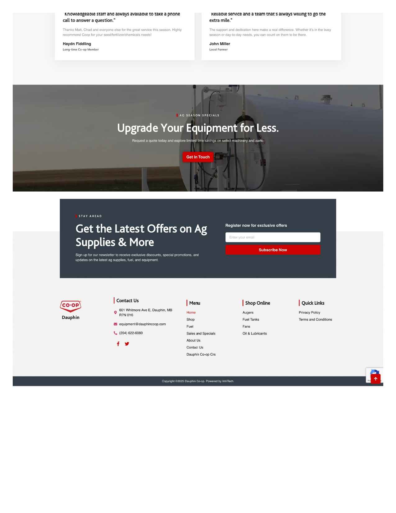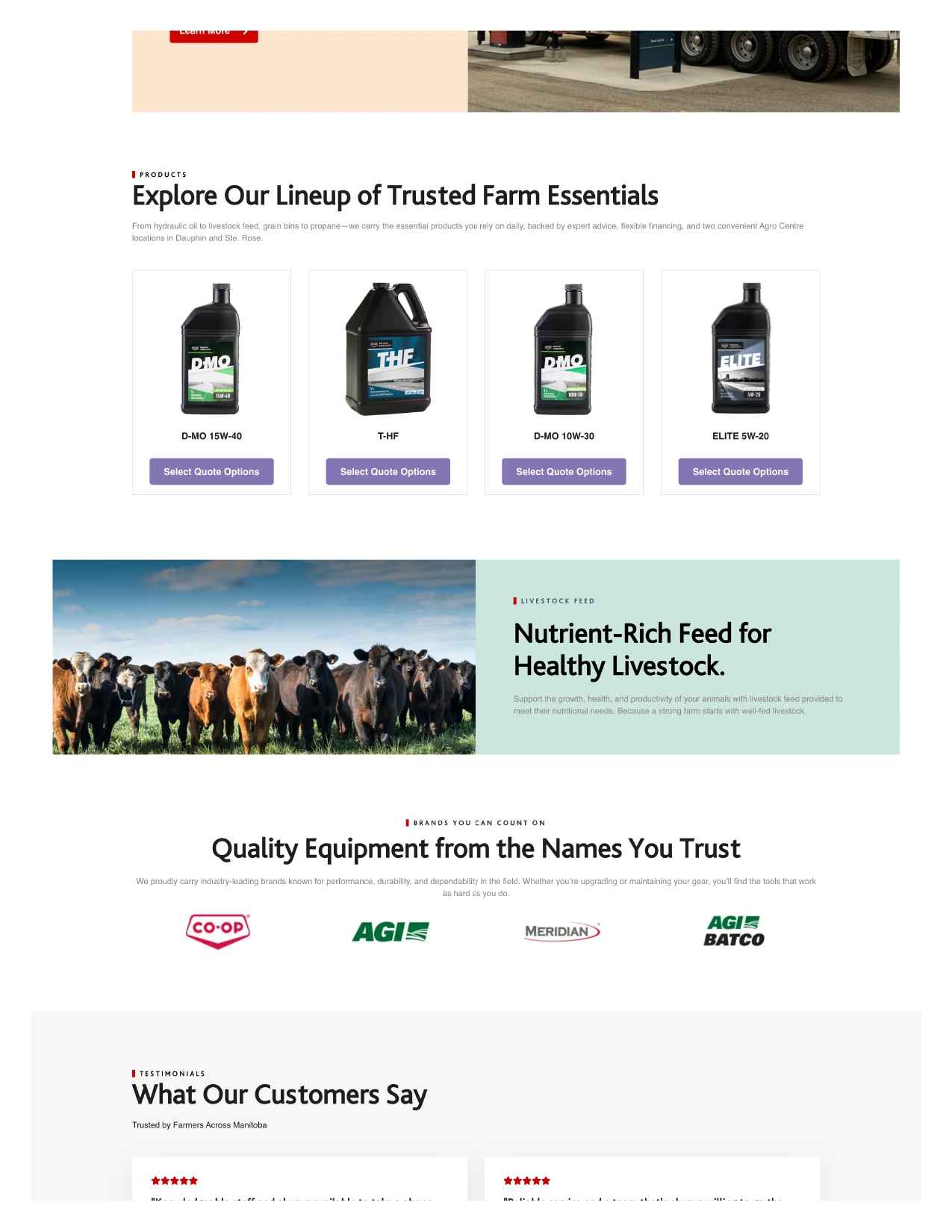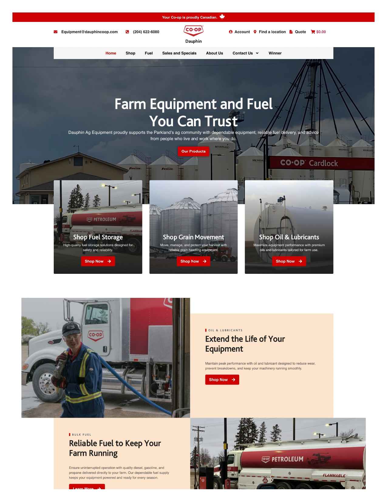 Dauphin Co Op Equipment is an agricultural supply and equipment retailer that serves farmers across Manitoba with augers grain handling systems fuel storage products lubricants and a wide range of farm equipment. I created pages and organized product categories so users can browse equipment easily and find what they need without confusion.