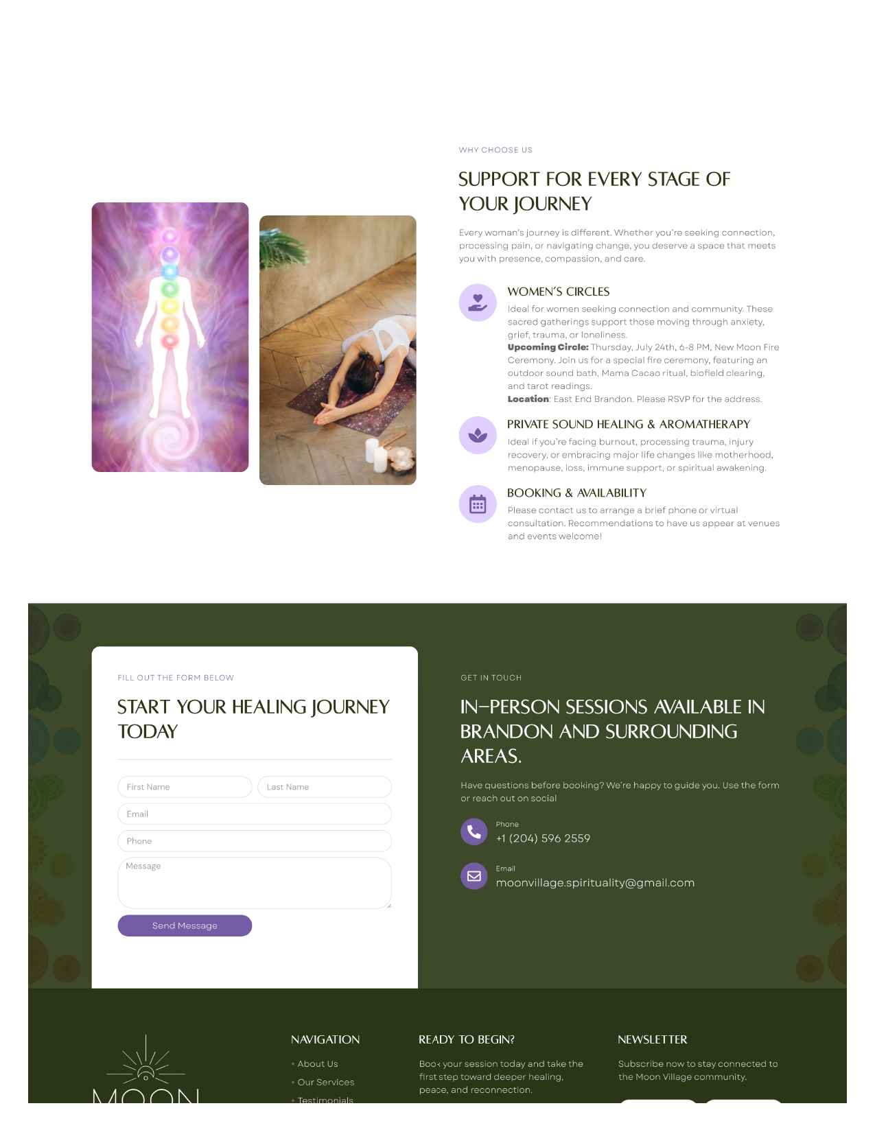 Moon Village is a sacred wellness space devoted to women seeking inner healing spiritual awakening and emotional restoration through sound ritual and guided intentional practices. Made several changes to the website including layout adjustments content refinement and improved structure so information is easier to follow for visitors exploring retreats ceremonies and healing offerings.